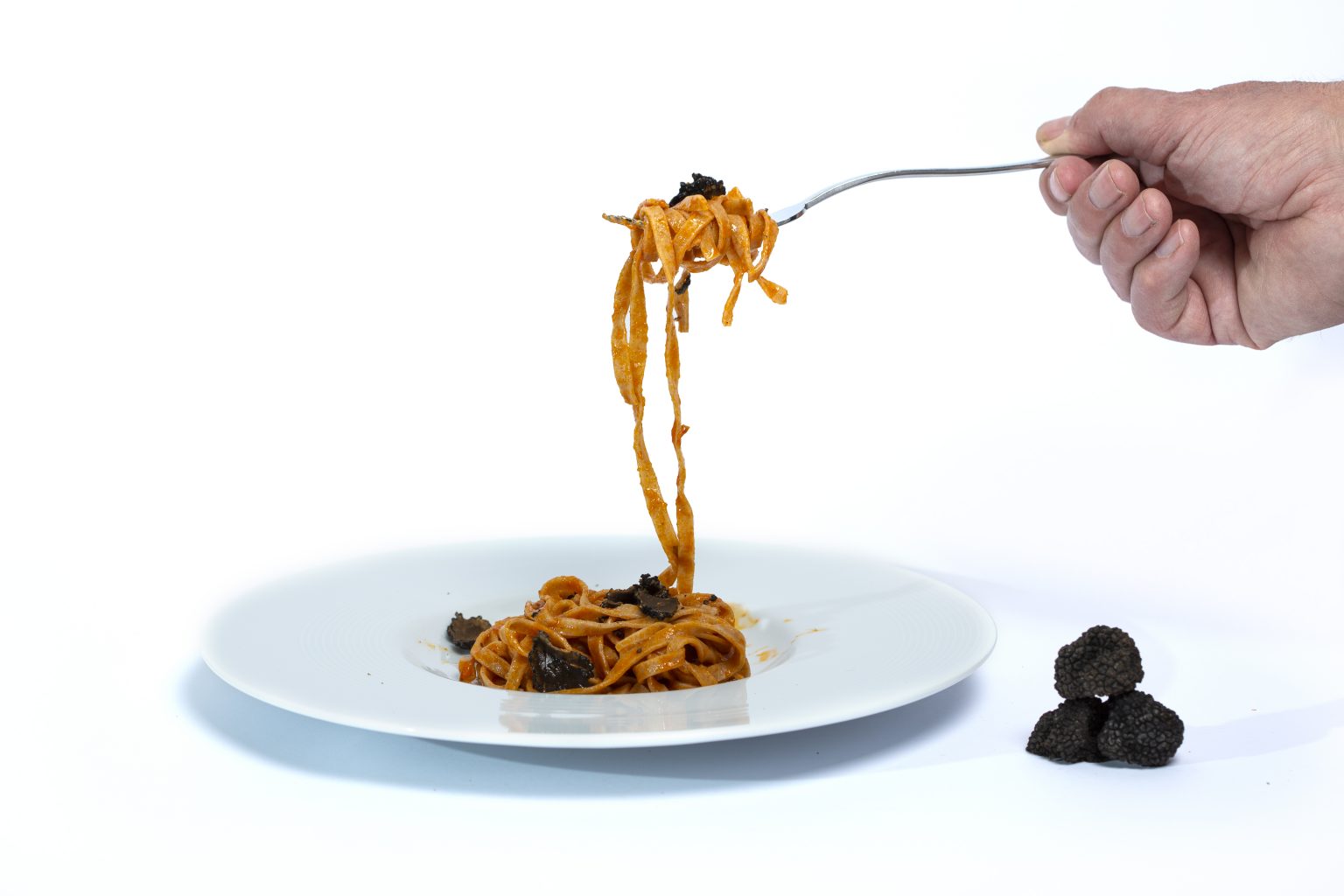 Scaldare una padella con un filo d’olio e far imbiondire uno spicco d’aglio privato dell’anima. Quando l’olio si è ben aromatizzato inserite la passata di pomodoro e create un bel sughetto. Nel frattempo buttate la pasta in abbondante acqua bollente leggermente salata. Trascorsi 18 minuti fate scivolare la pasta nella salsa ed amalgamate bene. Una volta ottenuto l’effetto desiderato spegnete il fuoco, inserite il tartufo ed incorporatelo alla pasta.